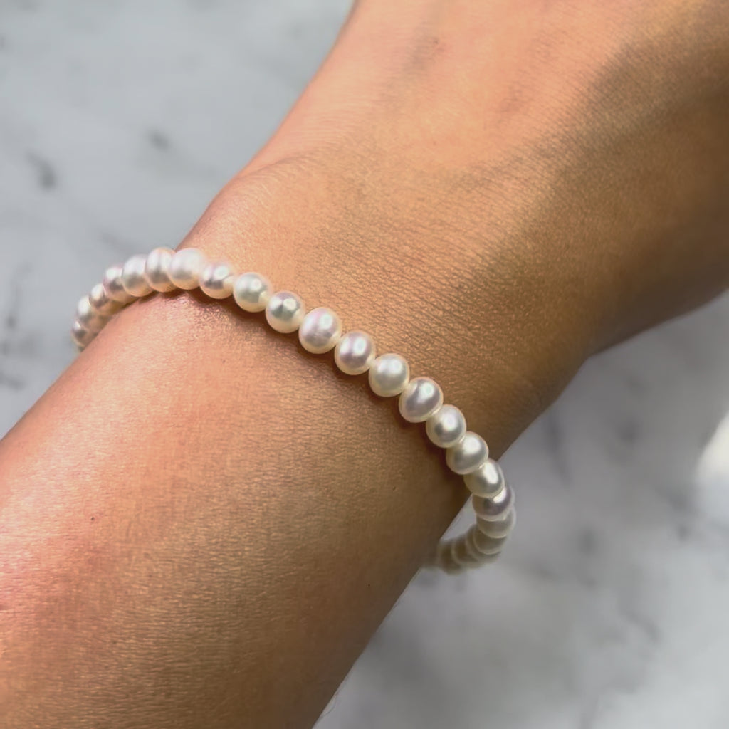 Pulsera elasticada de perlas cultivadas de agua dulce, 6.6 grs. Edición limitada.