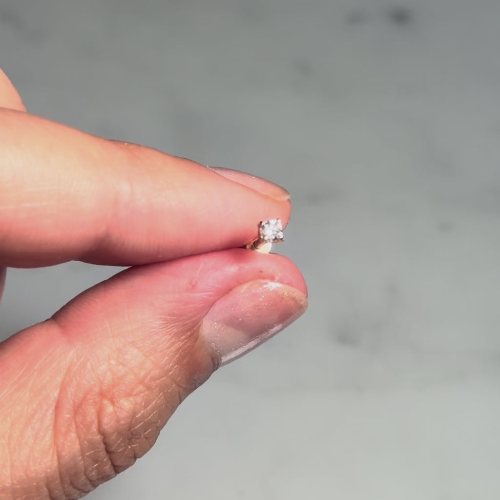 Piercing de oro 14k con diamante natural de 0.05 cts, 8 mm de largo, atornillado anterior. Valor unitario. Edición limitada